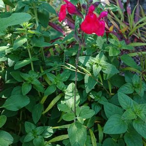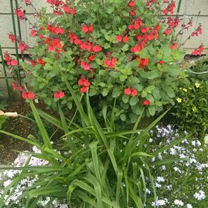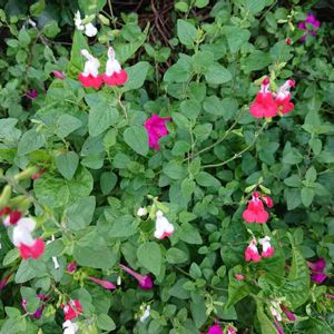 チェリーセージ アイスバーグ ダブルデライト コンパクトにサイズダウンしたチェリーセージが咲いています。 いつもカップル♡ 今日はいい夫婦の日らしい♡ あっ!? アイスバーグも初です♡