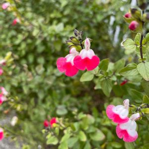 可愛らしくお庭に咲いていた、ピンクの「チェリーセージ」で、おはようございます🩷🍒🩷 普段紅白ツートンカラーのチェリーセージに見慣れていたせいか、ピンクバージョンは、新鮮に感じました😃❣️ "チェリーセージ"は、メキシコからアメリカ南西部を原産とハーブの一種🇲🇽 正式名が「サルビア・ミクロフィラ」というように、サルビアの仲間で葉をこすると甘い果実のような香りがすることから「チェリーセージ」の愛称で親しまれていますね✨ 暑さや乾燥にも非常に強く、一度根付くと驚くほど長い期間、可愛らしい小花を咲かせ続けるのも特性ですね🎶 ー花言葉は、「家族愛」、「知恵」…他。