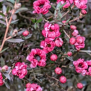 おはようございます🎶 1️⃣、2️⃣ビジューマム ローズクォーツ! 多肉を買いに行ったら、マーガレットのところでこの花が目につきました😍‼️ 静岡県農業技術研究所により、世界で初めてマーガレットとローダンセマムの交配に成功したハイブリッド品種です🥰‼️ 寒さに強く、1月〜6月まで花を楽しめるそうで楽しみです🎶 3️⃣チェリーセージ! この前より花が増えてました💕 ひょろひょろしてるので、支柱を立ててみました😁 4️⃣、5️⃣ブルーベリー! 小さな新芽がたくさん! ピンク色の新しい新芽が伸びてきてました💕 紅葉した葉っぱと新芽! この時期ならではですね🥰‼️