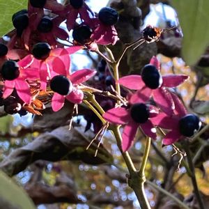 朝から雨ですね 最近のお散歩から ①クサギ 綺麗な色に🩷 ②メキシカンブッシュセージステラ 寒くなって,ますます,色が濃くなってきました ③サルノコシカケ すごく硬いんです ④ダイオウショウ 葉が,3本1組になっていたとは,初見😳 ⑤ピラカンサ 遠くからも,赤色が目立ってます🐦