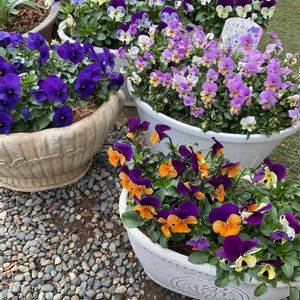 ビオラさん達💓 ちりちり バラバラに いろんな 場所に 散らばってるので、ちょっと 集めてみました〜‼️^_^ いろんな色が 有って、楽しいです❣️ 2枚目(レモンタイム)、3枚目( ネペタ ウォーカーズロー) は 晩秋に 挿し芽しておいたのが 充分 発根したよう〜なので、鉢上げしました‼️ 今日は、時間帯によって 雪❄️が 少し ちらつきましたが、午後からは 天気予報通り 止んだのでホッとしました。。。 でも やっぱり ちょっと空気が 冷たい💦 まだ すぐには 春🌸には ならないんですね〜‼︎‼︎ もう少し 我慢、我慢‼︎🙁