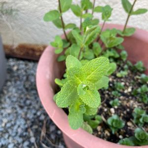 少し前に 道の駅から連れ帰って しばらく 転がしてたラズアガ親子 ご立派なたたずまいに✨️ 昨年から居る 大好きなミントも復活中✨️ 増えるといいな🫖