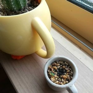 ①②斑入りのユキノシタと苔を何に植えようか考えてたら、セリアでお手頃なもの発見 で、植えてみた ……🤔💭… ちょっとやっつけ仕事のような感じで、苔の植え方…雑やな🫣💦 時間が経てばいい感じになるかのかな🙄 また気が向いたとき 手直ししようかな…(((╭(。’ㅂ’)╮♪ ③先週まいたレモンバームが発芽してました🌱🌱🌱