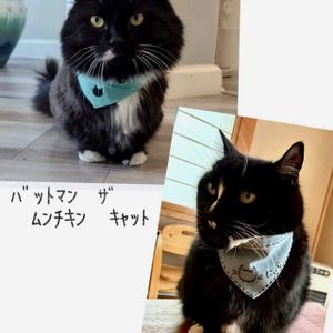 22日 🐱にゃんにゃん祭り🥁 1️⃣ ↖️ネットで見つけた にぃじに似ている子 名前が バットマン ザ ムンチキン キャット😸 ↘️ にぃじ💬 ぼくに にてるぅ?🐾 2️⃣ 真似っこでバンダナを作りました。 背中に背負ってる方が好きみたい。 3️⃣ ガチャガチャの毛玉入れ。 にぃじの毛っけ 詰め込みました。 4️⃣ アネモネが咲いてくれました💖 5️⃣ ラベンダー🪻 咲いてくれるかな💟
