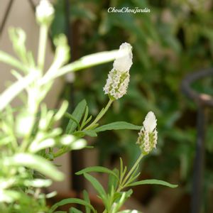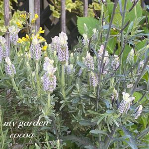 去年、無事夏越しし今年も咲いてくれました。 白いお帽子の可愛いフレンチラベンダーです。