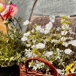 "白ネモフィラ" を籠に入れ替えました🧺 丁寧に扱わないといけない程柔らかい葉と花 優しく包み込みたいくらいにフワフワ〜𓂃 𓈒𓏸◌ "スウェーデンアイビー" も少し加えました💛 咲き進んできた "ペチコート水仙" "レースラベンダー" "葉牡丹萌花ショコラ" も雰囲気抜群🪄◝✩ 昨日、密集している "キララ" を半分くらいカット✂️ 1本だけ短い "ラナンキュラス スプリンクルス" をカットし花瓶に🌼*・❁⃘*.゚