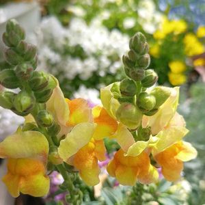 🍀おはようございます🍀 キンギョソウ❣ 蕾が開いてきました(・∀・) ③モッコウバラの蕾を見つけて 黄モッコウバラ💛と 白モッコウバラ🤍が 仲良く入り交ざって咲く春を 楽しみにしています♬ 両方地植えにしています ④夏越し冬越しした レースラベンダーが 咲き始めてきました♬ ⑤真っ赤なボケは満開になりましたが いつも遅れて咲く 淡いオレンジも咲き始めて♬