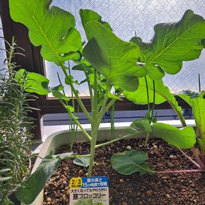 狭小ベランダの菜園 今は、茎ブロッコリー、クキッコリー、イチゴ(とよのか、よつぼし)、イタリアンパセリ、他にスィートケールが育ってます。