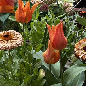 ❶チューリップ バレリーナ&カレンジュラピグミーパフ✨✨遅咲きのバレリーナとコラボてきるカレンジュラ、グッジョブ(๑˃̵ᴗ˂̵)✌️❷ボリジ✨✨先日近所の園芸店でクーポンサービスでいただいたもの🤗❸パティオガーベラ✨✨二年目です🤗❹ナンジャモンジャの木✨✨いまだに小さな鉢で…🥺❺ガーベラ✨✨おつとめ品で二年目👏