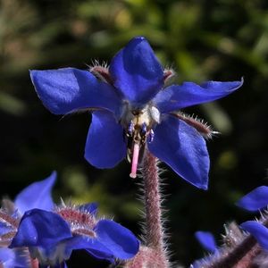 ブルーの星形の花が愛らしい、「ボリジ」でおはようございます🍃💙🌟💙🍃 "ボリジ"は、地中海沿岸地域を原産とするムラサキ科の一年草🇮🇹🇵🇹🇲🇦 古代ギリシャ・ローマ時代には、戦士たちが気分を高揚させるためにボリジを浸したワインを飲んだという逸話もあるほど、西洋では、"勇気を与える実用的な薬草"としても知られているようですね💪🌿✨ 古い文献には、花部はムラサキ砂糖漬けにしたりサラダに散らしたりして食用にできる他、ワインに入れると色が青からピンクに変化する性質もあって目でも楽しめるハーブ…とありましたが、現代の医科学的な常識では、肝毒性を有する"ピロリジジンアルカロイド"を含むことが明らかになっていますので、食利用は控えておく方が無難ですねꕀ⋆🥗🍷☠️💦 ー別名は、「ルリジサ(瑠璃萵苣)」、「スターフラワー」。 ー花言葉は、「機智」、「勇気」…他。