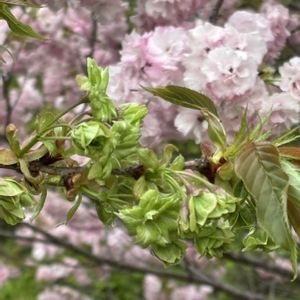 おはようございます☁️☂️ 小雨が降ってます ①御衣黄桜、後ろは福禄寿 天皇陛下のお色とされてる? ②なんとか2色揃いました ③チューリップが終わって存在感増 ④こちらも花盛り🥰