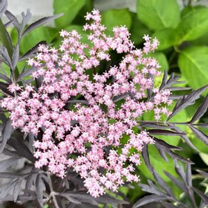 昨年の秋頃にお迎えした西洋ニワトコのお花が咲きました🤍 黒っぽい葉の色とは対照的な白と赤のかわいいお花でとても良い香りです💕 今はまだ小さいし鉢植えなのでお花も少ないですが、大きくなってたくさん咲いたらエルダーシロップを作ってみたいな🎵
