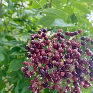 西洋接骨木が大きく育ちました 7月実が色づいてきました 5月に咲いてた花 今年は花と実、美と健康ドリンク🍹ゲットだぜ!✌️