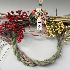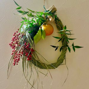 💞お正月飾り💞 ようやく、出来上がりました! 12/30がいいタイミングと聞いていたので、無事 飾れて良かった!🤗🌈 レモングラスのしめ縄です! 編むの難しくて、隣の義父にお手伝いして貰い出来上がり! あとは、夏からのドライフラワーをゴチャゴチャしめ縄にとりつけました!😁🤭🤗❣️ 今年は、5個できました! 🏷乙女色クラブ 🏷お正月飾り 🏷レモングラスリース 🏷しめ縄リース 🏷真っ赤な実 参加させて下さい! よろしくお願いいたします! 2022.12.30.📸pic