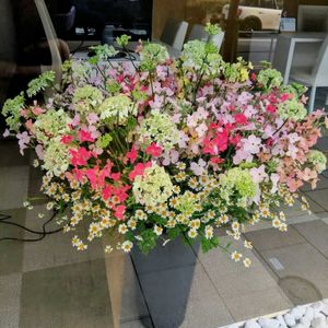 ユキヤナギたっぷりのアレンジ スイートピーやリューココリーネで軽やかに 外は寒いけど気分は春色 ユキヤナギなかなか思うところに入ってくれずムズカシ