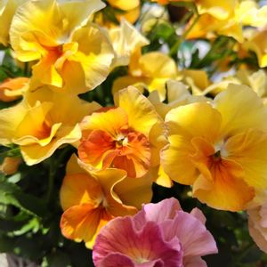 ビオラ エボルベストライプ絞り お迎えのときにこれは絞りなのか(?_?)と思っていたけどやっぱり絞りっぽくない😆 去年の子はとても絞り模様だったから でもこの黄色がかわいい💛🧡 ➁大好きなマトリカリア、半額だったのでお迎え🤍 ➂原種チューリップレディジェーンが今年も元気に咲いてくれました😍