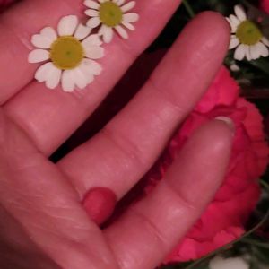 🍀①~④マーガレット 🏷️今日のお花 ①②お出かけ先にて ③④自宅にて 去年の写真です 3年目の今年はまだツボミの状態です ピンク色は年々色が薄くなってきてます 🍀⑤マトリカリア マーガレットを一回り小さくしたような可愛いお花です 葉っぱの形も違いますね 去年散歩道にて