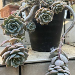 梅の香りが漂う2月になりました。 今朝の写真は、カットしようか迷いながら、ここまで育ってくれた白ボタンたちになります。 ◇1.2枚目→白ボタン鉢 ◇3枚目→虹の玉のハンギング ◇4枚目→完全放置の乙女心 ◇5枚目→完全放置の姫秋麗 今日は、気温自体は高くありませんが(現在6度)、おひさまの光がとても強く、体感気温(10度とのこと🥰)はとても暖かく感じます。 紫外線をとても強く感じ、日焼け止めだけでは対抗出来そうにないので、久しぶりに麦わら帽子をかぶりました。 16年目の麦わら帽子。 とっても大切に使用してきましたが、昨夏、少しだけほつれが出始めました。 もう一年頑張ってもらうか、全く同じ帽子をお迎えするか、こちらも迷っています。 今夜から数日間、冷え込みは少し収まりそうなので、冬季にしてはかなりしっかりめにお水やりを行い、リキダス入りのお水も与えました。 1.2枚目は、数年前に作りました白ボタン鉢になります。 通常、階段の脇に置いてあるので、茎がびっくりするほど伸びて育ってくれました。 ここまでちぎれずによく頑張ってくれたな~と思います。 3.4.5枚目も、我が家では年季の入った数年物の多肉たちになります。 耐寒性の強い品種であれば、しっかりと根が張っていることにより、完全放置でも冬を越すことができます。 (※我が家の外部環境においてです) 自由気ままに育つ多肉たち🌱 いつまでも見続けることが出来ます。