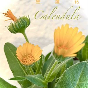 カレンデュラ *和名:金盞花(キンセンカ) 庭が寂しくなってきたので 昨年末カレンデュラの ポット苗を🛒 元気の出る黄金色の花 盞「杯」(さかずき)の カタチに似ていることから 金盞花の和名が あります