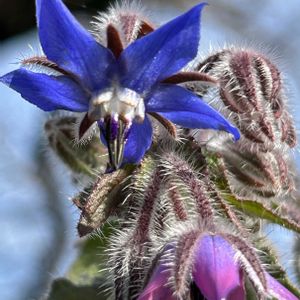 咲き始めはピンク色そして 瑠璃色の「マドンナブルー」へ 聖母マリア様の纏った青い衣から そう呼ばれています ボリジ ムラサキ科ルリジサ属 公園内ハーブ園で咲いていました♪ こんな時期に‥ こぼれ種でしょうか 下向きに咲く青い星型の花が健気🥰