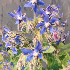 ブルーの星形の花が愛らしい、「ボリジ」でおはようございます🍃💙🌟💙🍃 "ボリジ"は、地中海沿岸地域を原産とするムラサキ科の一年草🇮🇹🇵🇹🇲🇦 古代ギリシャ・ローマ時代には、戦士たちが気分を高揚させるためにボリジを浸したワインを飲んだという逸話もあるほど、西洋では、"勇気を与える実用的な薬草"としても知られているようですね💪🌿✨ 古い文献には、花部はムラサキ砂糖漬けにしたりサラダに散らしたりして食用にできる他、ワインに入れると色が青からピンクに変化する性質もあって目でも楽しめるハーブ…とありましたが、現代の医科学的な常識では、肝毒性を有する"ピロリジジンアルカロイド"を含むことが明らかになっていますので、食利用は控えておく方が無難ですねꕀ⋆🥗🍷☠️💦 ー別名は、「ルリジサ(瑠璃萵苣)」、「スターフラワー」。 ー花言葉は、「機智」、「勇気」…他。
