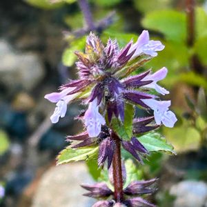 ヤブチョロギ(薮丁呂木)(薮長老喜) シソ科 イヌゴマ属 分布地 本州(新潟県以西及び近畿地方以西)〜沖縄に帰化 古代ローマ帝国の兵士が種を蒔いて道標にした説や、薬草として傷治療として利用した説があります なぜなら、咲くまでは目立たないが、咲くとめちゃ目立つからです 近所の荒地に咲いています 去年見つけた花で今年も沢山咲いています ヤブチョロギはマルチタスクでマニアックな雑草です 花期 3〜4月 道端、荒地、空き地に生える多年草又は越年草 原産地は、ヨーロッパ、西アジア、北アフリカで、帰化植物 葉や茎萼には毛が多く、葉は対生 茎は下部で分岐し、直立又は傾斜 高さは10〜60cm 花は唇形花で薄紫色 上唇は小さく、下唇は大きく3裂 大きさは3〜6mm 萼は5裂して赤紫色 茎の上部の葉腋に2〜6個の花をつける 花の感じはシソ科の花らしく、クルマバナ、イヌゴマの花に似ている 別名はヤブイヌゴマ(薮犬胡麻) 全体の雰囲気は、トウバナ、ヒメオドリコソウに似ています 名前が面白く、薮のチョロい草😎🌱❓ 根茎がお正月におせちに使う、酢漬けの赤い貝みたいなの🟰チョロギの根茎に似ていて、藪に生えるからこの名がついたそうです 群生しています