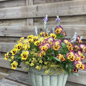 こんばんわぁ〜🌛.˖٭ 去年の12月に作った寄せ植えの現在☺︎*ᕷ˖° よく咲くスミレがモリモリ💛❤💛💛元気♪̊̈♪̆̈♪̊̈♪̆̈♪̊̈- ̗̀(⑉˙ᗜ˙⑉) ̖́- 綺麗に咲いています♪ 𓈒𓂃꙳⋆ エレモフィラのお花も咲き始めました💜💜 今日も①日お疲れ様でした(⁎ᴗ͈ˬᴗ͈⁎)⋆*✰