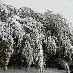 2日に降った雪は湿気を含んだ重たい雪❄️ 積もった雪で竹は垂れ下がり 海は大時化となっていました🌊 北陸の冬らしい光景です☃️