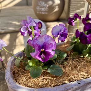 こんにちは♪ 今日は暑いです💦 ①②③ビオラ✨ ④⑤園芸店のヘチマ&バラ✨