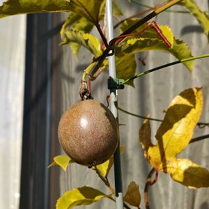 パッションフルーツ 色づきました 取れ頃はいつかしら………… 👱妹の家にて撮影です