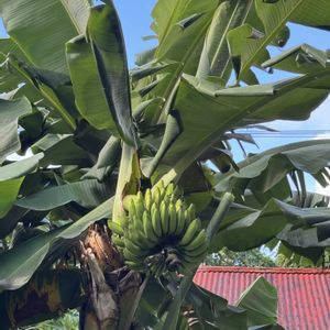 民家の庭先の風景 ①バナナ 島バナナです 今は、たくさんの種類が有ります。外来種です。 外来種も古来種も、いつも食べるバナナよりも、爽やかな味です。 50年前の島バナナは、今は、ほぼ有りません。あと味が、ほんのり巨峰のような味わい。今回、地元の方に、ご馳走になり、美味しさと懐かしさで、涙が出ました☺️ ②③ マンゴー🥭 カラス🐦⬛に食べられないよう、しばらくは袋かけ 少し大きくなったら、ネットを張り巡らして、太陽を浴びるようにされるとのことでした。 ④ライチ まだ青くて小さな実でした。 これから、成長が楽しみです。 さすが南の国🏝️ 庭の果物も、福岡とは違う❣️