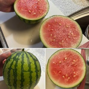 種から育てた スイカの苗🌱 知り合いにあげたら 出来ましたよ〜っと画像が 皆さん作ってる方(しろーと) 出来てるか切らないとわからない っと、みんな言ってます〜ww 上手に出来たみたいだけど🍉 本人からタネの色が黒く無いので 早かったかなぁ??っと うちのより全然でかいし 美味しいそう😋 来年はタネ 早めに植えようかなぁ_φ(・_・