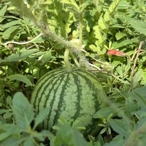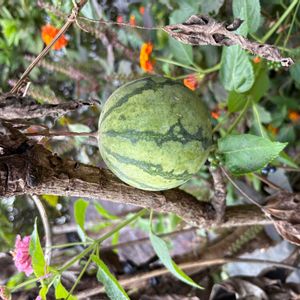 季節外れのスイカ🍉 少し大きくなったかな!? 色は濃くなってるけど……🤔もう少し様子観察してみよ〜っと👀