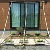 プランター栽培のゴーヤは、市販のプランター用支柱を使うか、プランターの左右に支柱を立てて、ネットを張っても良いでしょう。窓際に物干し竿をかけるフックなどがある場合は、フックに支柱を通して上からネットを張ることもできます。そうすると、緑の葉が日差しを遮るシェードのような役割を果たしてくれます。