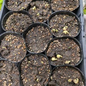 こんにちは☁️ この前植えたかすみそうが伸びてきました😊 枝豆🫛の芽も出てきた!🌱頑張れ! 天候が不安定だから最近ずっと頭痛😥