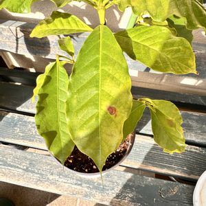 こんばんは😌 明日からの雪で避難前のアボカド🥑 エバーフレッシュ☘️ エバーさんは玄関中に… アボカドはデカいので屋根付きのパーゴラの下に