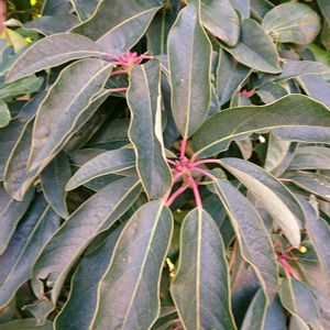 おはようございます🎶 1️⃣今日の花『ゆずりは』! 春になり新芽が出ると、古い葉が場所を譲るように落ちていくことから、名付けられた縁起の良い木で、お正月飾りにも使われます❗ 2️⃣姫ゆずりは! 葉っぱが6〜12㌢! 先端が尖った長楕円形! ゆずりはと違うのは葉っぱが垂れ下がらず、ふちにのこぎり歯があることも… 3️⃣キンズ(金豆)! 小さい金柑でトゲがあり、 種が大きく食用には適さないようです😅‼️ 4️⃣さんざし! 赤い実が目立ってました! 果実酒、ドライフルーツとして食べられるそうで、薬で使われることも… 5️⃣アボカド! 私も以前育てたことがありますが、残念ながらここまで大きくなりませんでした😂‼️ 今日の木達はすべて花屋さんにて📱💥してきたもので、色んな植物があり楽しいですね🥰‼️