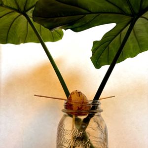 混み合ってきたクワズイモの葉をカットしたので水耕栽培のアボカドとちょっとの間楽しむ( ⁎ᵕᴗᵕ⁎ )❤︎