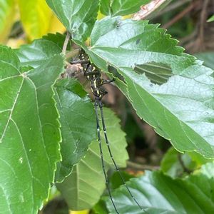キボシカミキリ カミキリムシ科フトカミキリ亜科 クワの葉にキボシカミキリ。触覚が長いです。