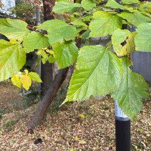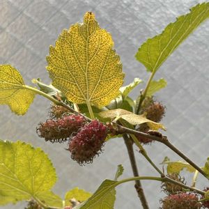 葉っぱは黄葉しているのに、実が付いているマルベリー🤭 変ですねぇ〜