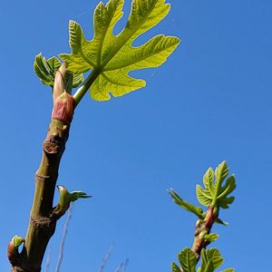 私の好きなイチジクのベローネさん♡ 今年も無事に芽吹いてくれて嬉しいー❣️ 4本枝が出てきたので良い感じの杯状仕立てに持っていけたら良いんだけど 今年は実が採れるかな?