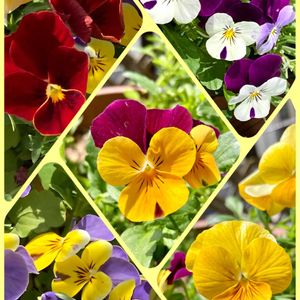 画像1/ビオラ たくさん咲いて混み合ってるので、ちょっと暑そうです。 画像2/イチジク (上)セレスト (中)キング (下)ドーフィン 画像3/イチゴ あんまり変化無し〜 いつ赤くなるの? 画像4/ネギ坊主 画像5/ニラ 今日の収穫