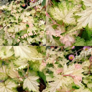 ①バラ科斑入葉♡ 小さな ツブの蕾👀っけ😘💖 ②キク科アークトチス属(ハゴロモギク属) アークトチス属と旧ベニジウム属の交配により生まれた園芸品種 蕾♡項垂れて🥀💞❇️ ③キク科 ☝🏻シソみたぃ~😙🤭 冬越し出来ました📣 ④シソ科 シソ近所の花友さんに頂きマシタ‥青紫蘇らしいけど🤔🥳どっちかなぁ♫ ⑤近所の庭先で 毎年咲いてます✨ 帰化植物✨ 🏷️2のつく日は斑入りの日 🏷️斑入り見つけ隊♪No.19 🏷️コラージュ仲間達 🏷️みんな最高 参加させて頂きます♡