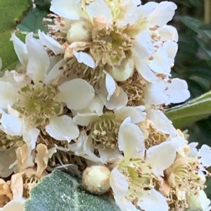 こんにちは☀️☁️ 通勤途中にビワの花がキレイに開いていました💕 今までは、お花が固まってころんとしていたのはよく見かけていましたが‥‥ ふわふわのクレマチスの綿毛も可愛い🩷🩷🩷 昨日のpic