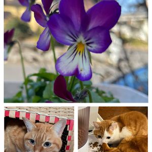 おはようございます。 風が冷たい朝です🥶 ① ラビット咲きビオラ 寒さが伝わってくるような表情です💦 ② ビオラ3色セット コープさんの宅配で! ③ ポリゴナム 庭のあちこちで雑草と化しています😅 ④ ブルーベリー 挿し木から6,7年、見事な紅葉です🍁 ⑤ アレッタ ケールとスティックブロッコリーの掛け合わせです。順調❗️ そして今日は月に一度のお楽しみ〜💓😍🥰 ニャンニャン祭り〜🐱😻🐈 手作りのネコちぐら、最近やっと入ってくれるようになりました😂 ご飯も2匹仲良く並んで食べる毎日です😊