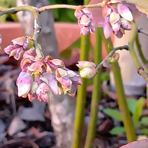 室内で冬越し中のブルーベリーの花が咲いてしまった、、もうひと株が咲くまで待って〜