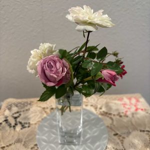①やっと最後のミニ薔薇の冬剪定もしました。 本当は鉢に植ってる状態で開花して欲しかったですが、今年は春が少し早めにくるかもとの情報も聞いたので少しでも早く休眠させてあげないとと思い、思い切ってカットしました✂️ ガラスの花瓶に3種のミニ薔薇を飾ったらあら可愛い😍 でもあっちこっち向くので大変でした〜 どの子も上手く見せてあげたいんですが〜😅 切り花を長持ちする薬剤も入れたのでしばらく楽しめるかなー ②昨日、家族でお寺参りに行きましたが朝に急いでアップルパイ焼きました🍎 でも主人は日帰りだったので結局食べず、娘と分けました 今、美味しそうなリンゴが出回っているので嬉しいですねー🍎 お安くなってるうちに買わないと、そのうち小さいのにたか〜くなって買えなくなりますねー 今日は朝ベランダ開けたら風がビューンと吹いて、塀には重い鉢しか載せられませんでした。 軽いのは風で倒れそうで危ないのでね〜 前の木がゆらゆら揺れてます🌳🌪️ 雪の多い地域の方特にお気をつけて下さいねー❄️🌪️🥶