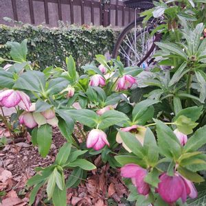 職場の花壇、畑です。 ➊クリスマスローズも終盤です。3株植わってますが、みんな元気。 ❷3年目のラナンキュロスラックスも元気。蕾がたくさんついています。 ➌植えたじゃがいもの芽。雨避け、温度キープのためにマルチをはっていたのですが、気温も上昇してきたので1度マルチを外しました。そうしたら芽が黄色くてびっくり。2日間光合成したら緑になってきました。