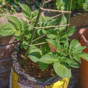 #ポテトバッグ甲子園2026 土が水持ち良いので植え付け以来 まだ一度も水をあげていません 雨水のみです☔️ 特にお手入れもする事無し 元気にすくすく育ってます🌱✨