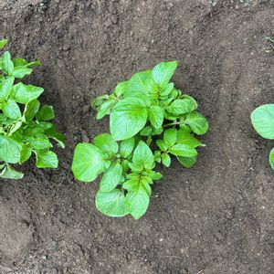 【1枚目】早めにスタートしたジャガイモ🥔 2月21日に定植し3月17日に出芽していて、日に日に成長し、定植から35日目の3月27日にはこんな感じに。モリモリですね😆 このあと翌日に土増して、ぼかし肥料も埋めておきました。さらに伸びたらもう少し土増しするつもりです。 【2枚目】湯たんぽ保温蒔きしたミニトマト🍅、バジル、青シソ🌿 本日、ミニトマトとバジルに本葉を確認しました😆 青シソは遅れて発芽したのでまだまだ。 【3枚目】湯たんぽ保温蒔きしたトウモロコシ🌽 現在、本葉1枚目が伸びているところ。7.5cmポットです。 すでに底から根が見えているので早く定植したいけど、まだ寒いかな? 定植適期は本葉3〜4枚くらいらしいです。 【4枚目】イチゴが開花中🍓 毎日筆で受粉しています。楽しみです。ムフフフ🤭 先日、開花した花にアブラムシを見つけ、よく見たら葉裏にも! 急いで油石鹸水をスプレーし撃退しました。効きますわ、油石鹸水!👍 「作り方:水200cc+食器洗剤0.75ml(2〜3滴くらいにした)+油1.5mlをスプレーし、念のため(葉が窒息しないように)15分後以降にシャワーで洗い流す」 【5枚目】ショウガ🫚 先日、直売店で立派な食用新生姜が売っていたので植えてみようかなと購入。 せっかくの機会なので、ホームセンターで種ショウガ(黄金ショウガにした)も買いました。現在、キッチンペーパーにくるんで段ボールで芽出し中。 今季はショウガにチャレンジでーす😁💪